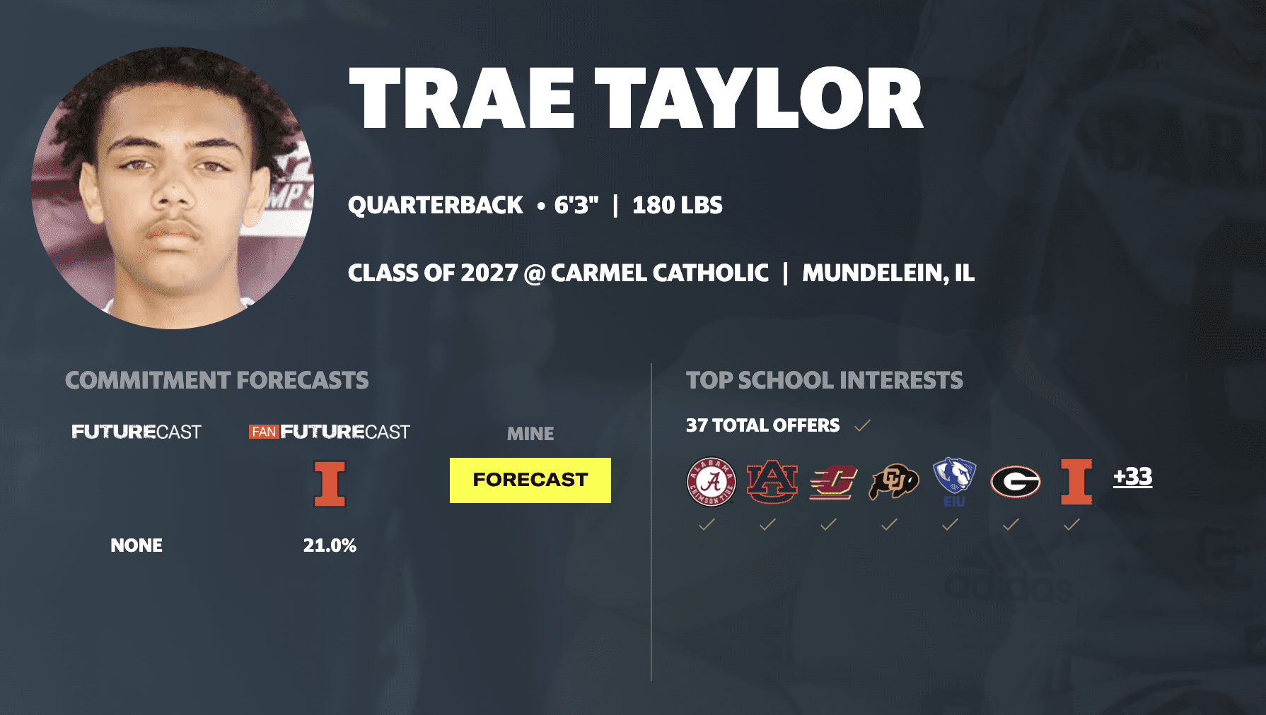 The Carmel Catholic standout has a total of 37 offers before listing down those five.